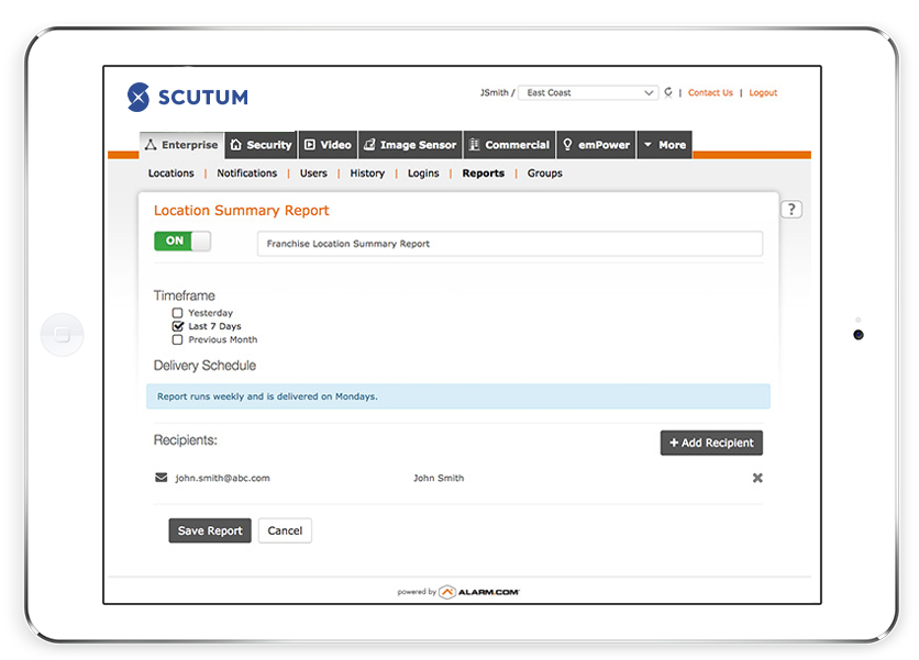 Efficiently manage a full suite of powerful business solutions including intrusion, video, and energy management through one easy to use app.